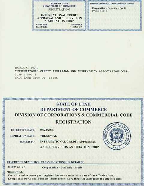 (Note: Our Utah company has stopped all activities, and the registration certificate only proves our establishment history)